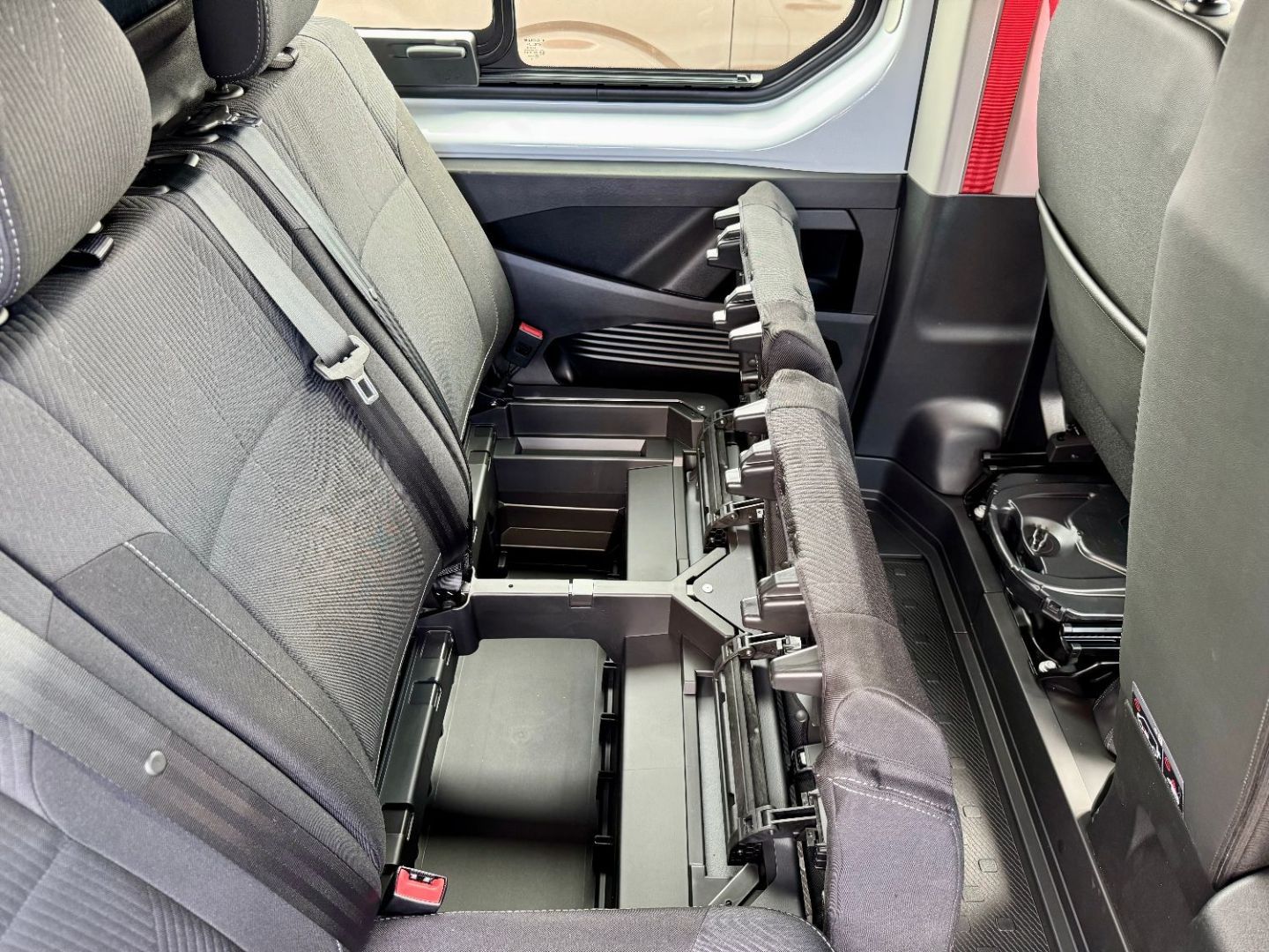 Porte laterale gauche vitre ouvrante - banquette passager AV 2 places avec rangement sous banquette, dossier fixe